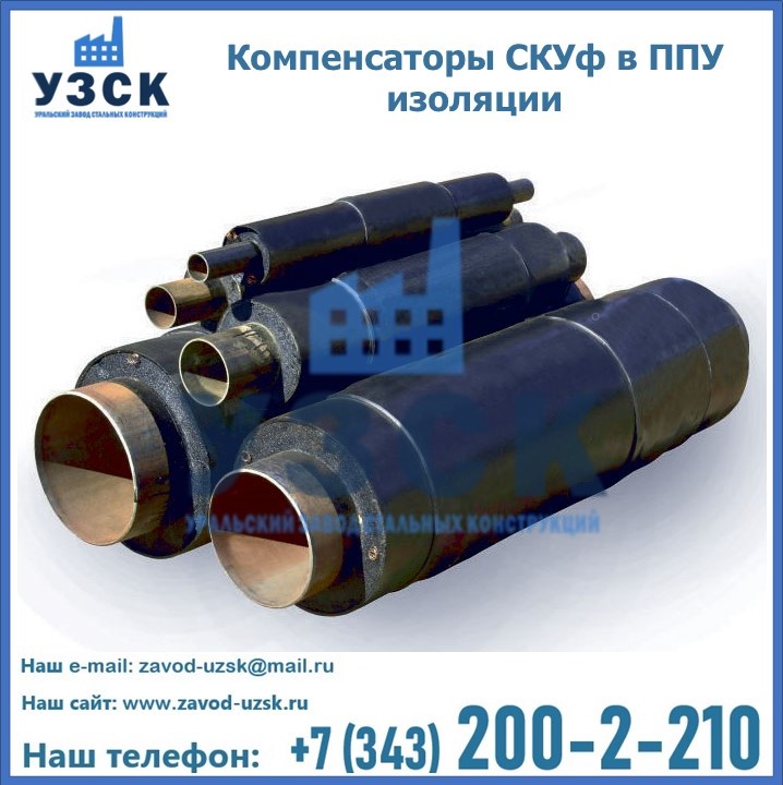 Если трубы для прокладки усилены теплоизоляцией ППУ, то на них допустимо устанавливать только cильфонный компенсатор СКУф в ППУ с такими же размерами теплоизоляционного слоя. На данный момент, такие устройства считаются одними из наиболее надежных, эффективных и долговечных элементов, способных обеспечить бесперебойную работу трубопроводов. На заводе «УЗСК» вы можете купить СКУф ППУ и другие компенсаторы по приемлемой цене, от надежных производителей. УЗСК осуществляет поставки сильфонных компенсаторов СКУ в ППУ любых типоразмеров. Наше предприятие поставляет и производит оборудование, имеющее длительную гарантию и большой эксплуатационный ресурс. Если требуется изготовить нестандартное изделие, то такой вариант выполнения заказа тоже предусмотрен, так как предприятие имеет собственные производственные площади и надежных поставщиков. На все оборудование имеются чертежи и прочая техническая документация. Чтобы заказать сильфонный узел СКУф в ППУ изоляции в Степногорске необходимо направить запрос через форму онлайн-заказа на сайте или связаться с нашими специалистами по телефонам, указанным в разделе «КОНТАКТЫ .