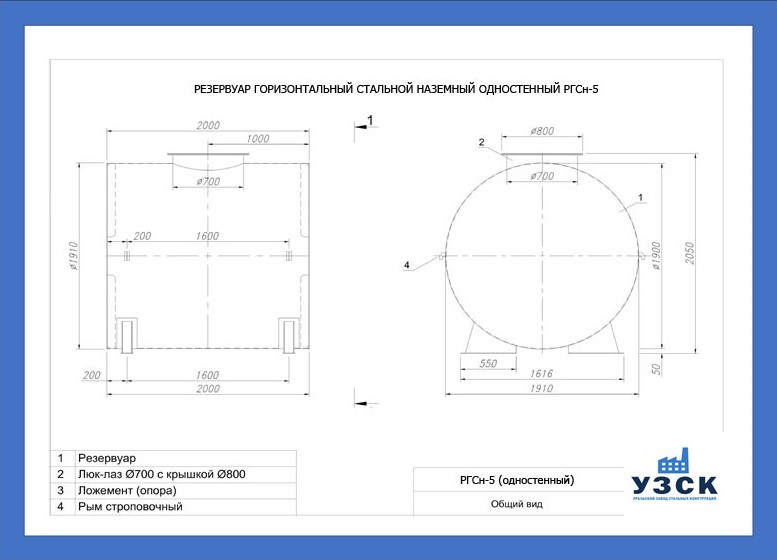 РГСн-5: горизонтальный резервуар одностенный наземного расположения;
