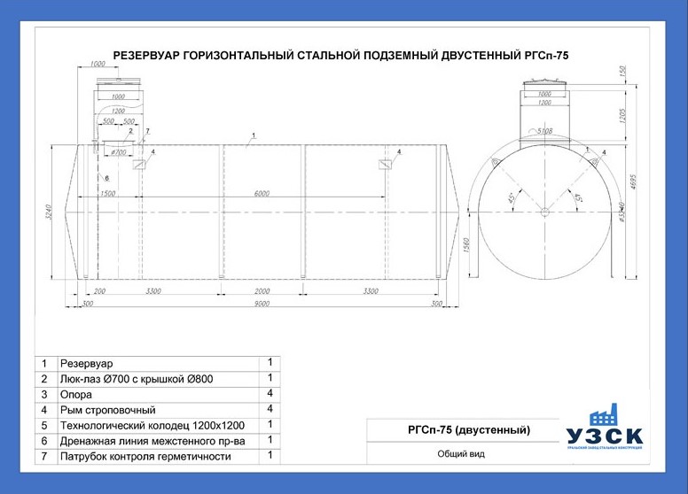 РГСДн-75: горизонтальный резервуар двустенный наземного расположения;